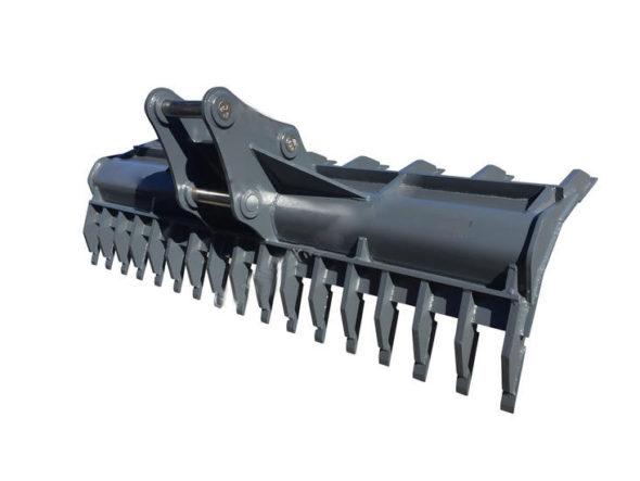 Our rakes can be built to mesh with hydraulic thumbs, and are available in various widths and configurations.